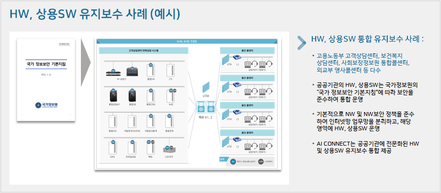 · 최근, HW 및 사용SW 운영사업에서는 IT 장애관리 이외에도 "국가 정보보안 기본지침" 등이 보안지침 따른 보안관리 행정지원이 더욱더 중요해 지고 있습니다.